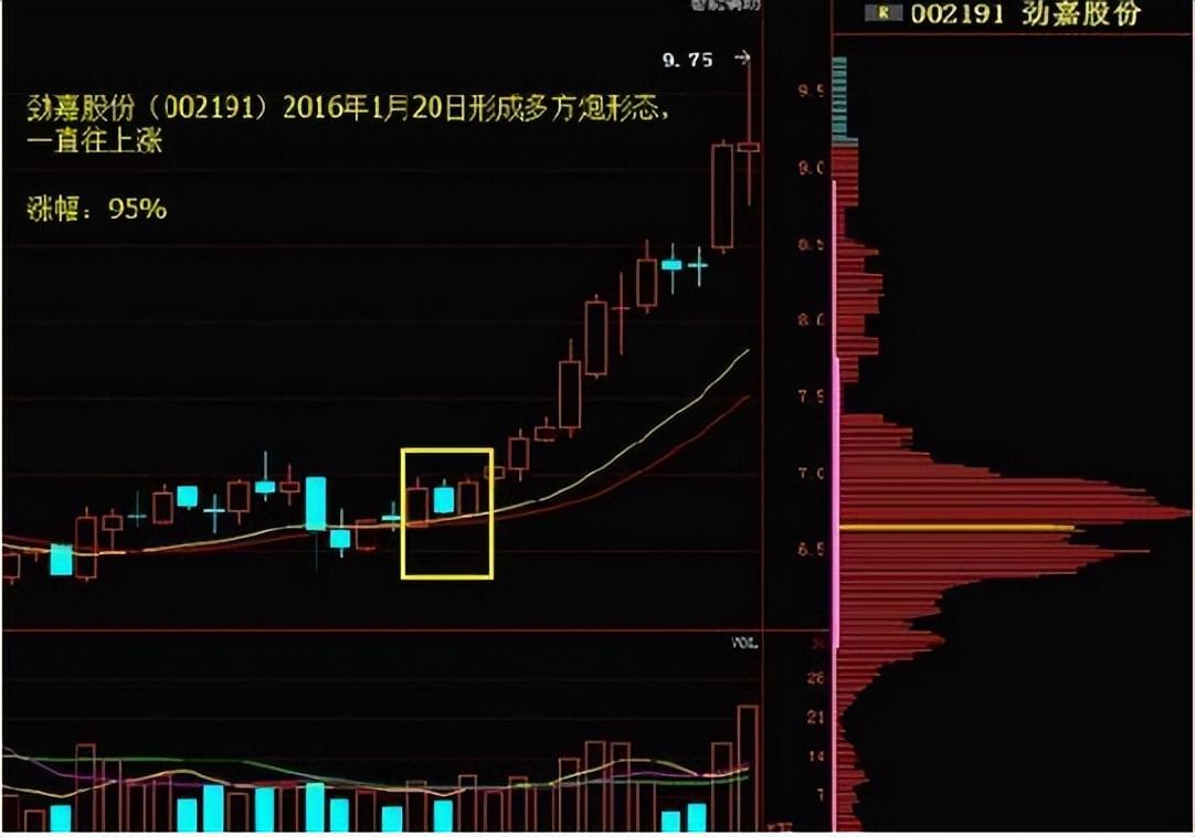 2、判断多方炮的时候不能只从K线的走势上来看,还有结合着成交量