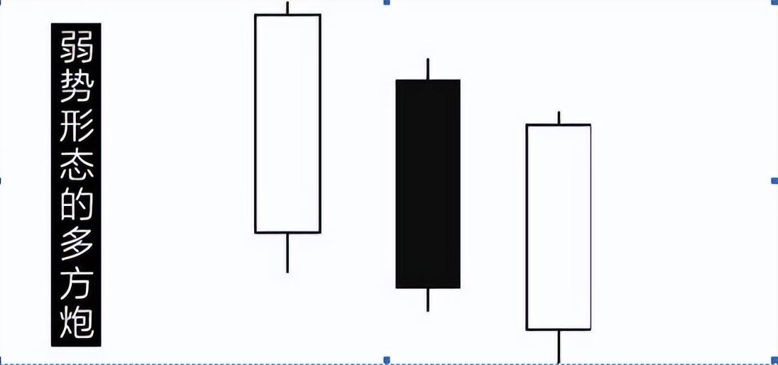1)、如果接下来股价出现“跳空上行或继续放量上攻”的情形,表明多方炮的技术意义有效,这时称之为多方开炮,两阳夹一阴的K线组合亦称“炮台”,表明后市股价将有上升空间。