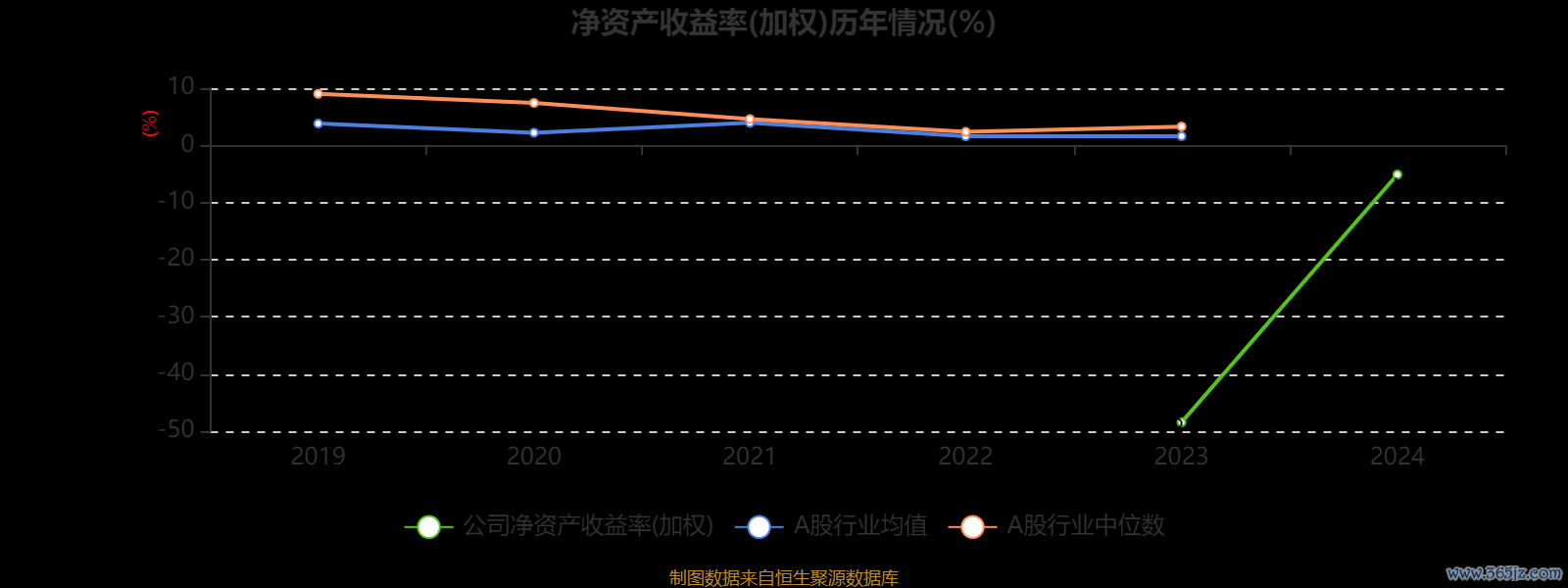 数据显示,2024年公司加权平均净资产收益率为-5.11%,较上年同期上升43.33个百分点。